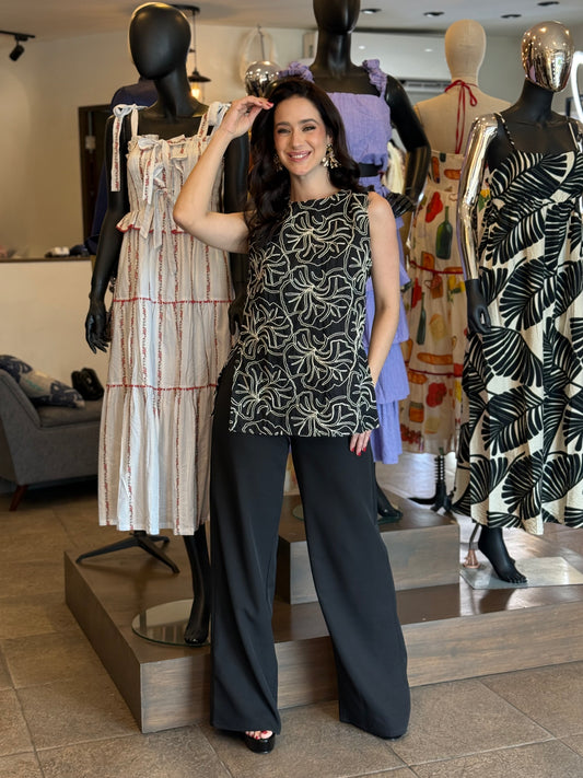 Midnight Leaf Embroidered Top