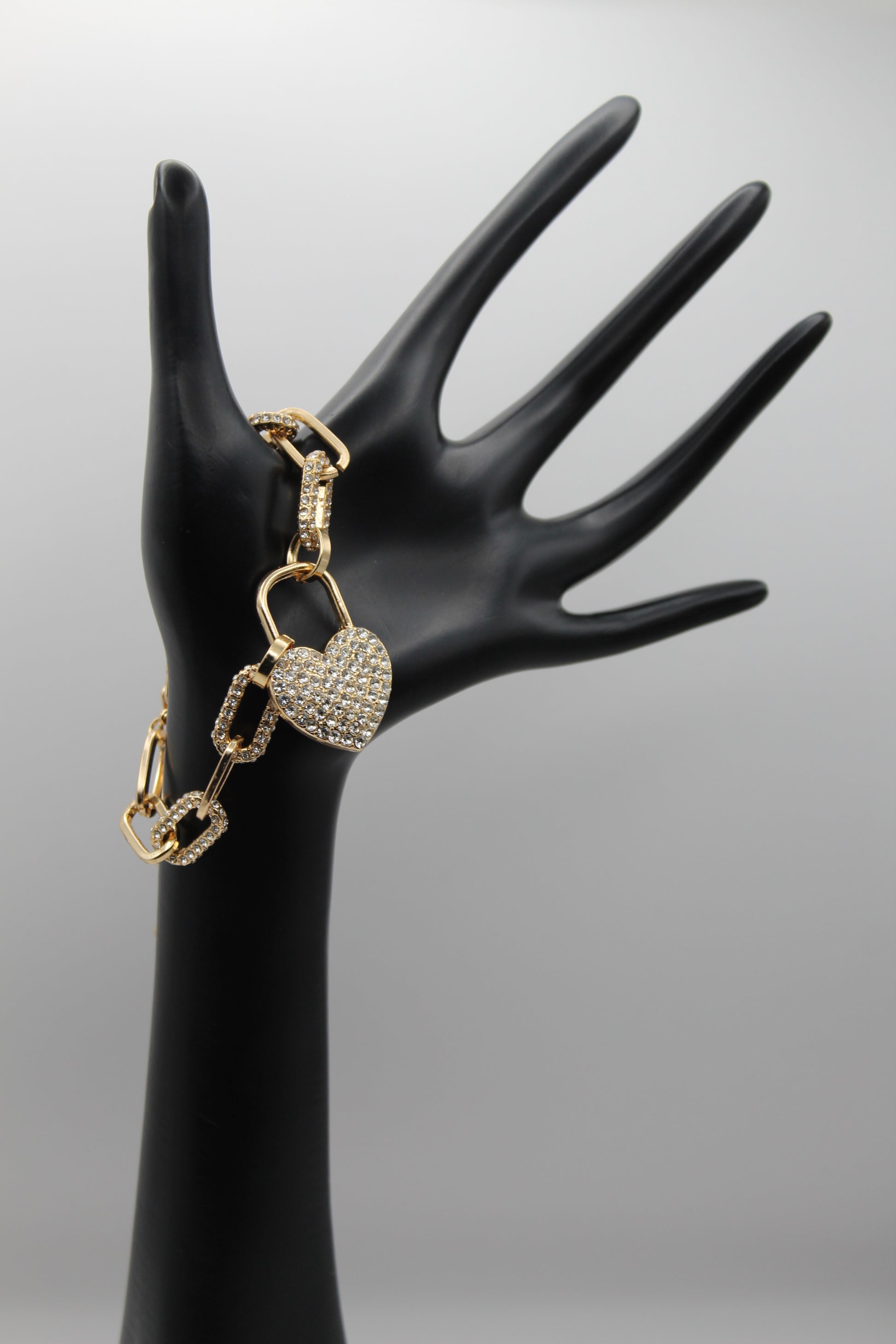 Pulsera dorada con dijes de cerezas, flor de perlas y cristal tornasol, ideal para darle un toque divertido y femenino a tus looks.